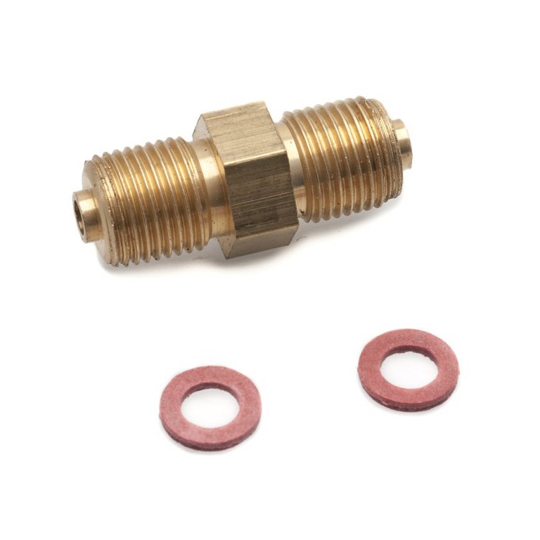 Straight Adaptor with male threads 1/8 in BSP to 1/8 in BSP. Supplied with washers. Uses include joining two oil pipes 070.024 or 070.025 together to increase length, for example on rear engine vehicles