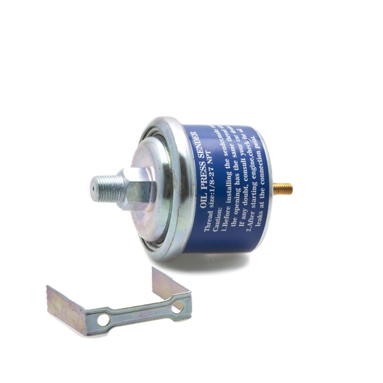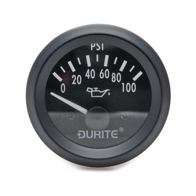 A 52 mm diameter 12 volt Oil Pressure Gauge with white graphics on a black dial and with a black rim. Complete with 1/8 in NPTF sender. Comes with full instructions. (Ballast Resistor not needed)