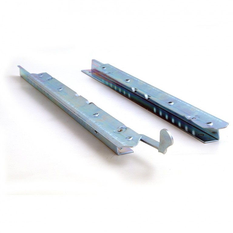 Comprises of both the parts that fit to the seat and the parts that fit to the floor. Plated. Length 480mm. Locking lever on the right-hand runner.