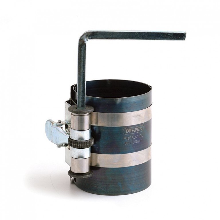 Spring steel band wraps around the rings and piston to enable you to enter the piston into the cylinder. Adjustable from 60mm to 100mm bore diameter with adjusting key provided