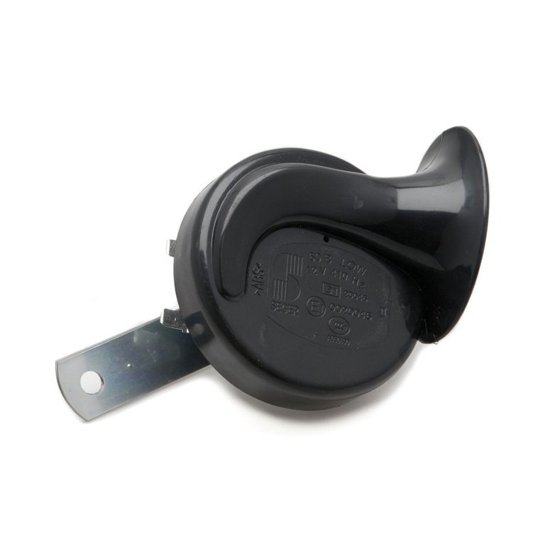 Black. 12 volt. For the technically minded the low note is 410 Hz. Use on its own or paired with the matching high tone horn. Supplied with a mounting bracket set. Connection via Lucar type spade terminals