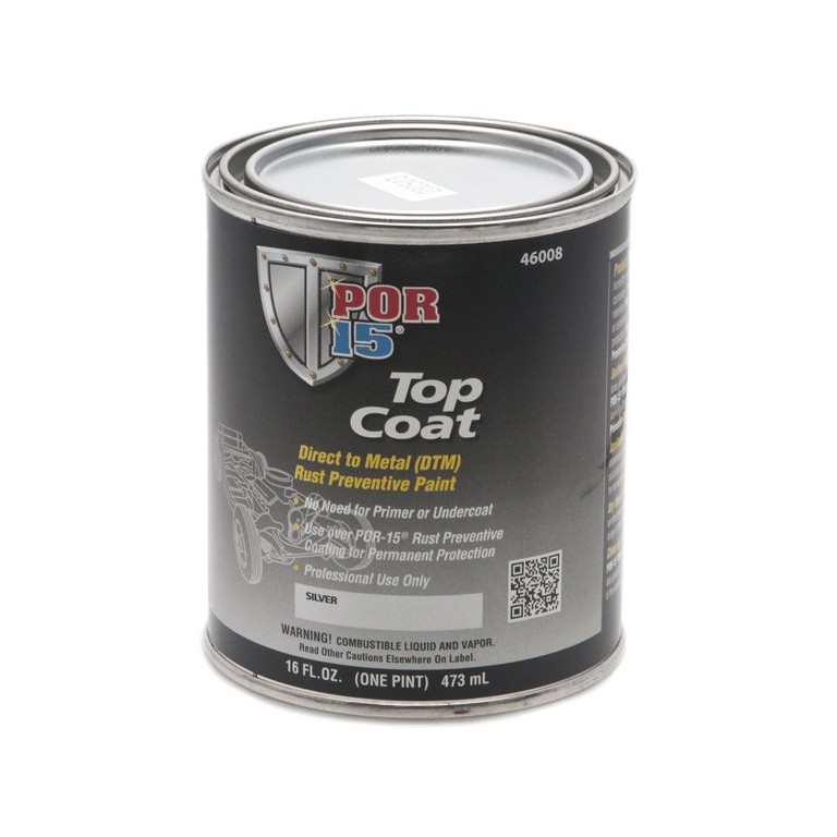 POR-15 Top Coat Silver is a permanent medium-gloss silver coating developed for application over painted and unpainted surfaces. Apply over POR-15 Rust Preventive Paint for the toughest, most permanent protection against rust and corrosion ever developed. It is non-porous and will not crack, chip, or peel when properly applied according to directions. It has amazing scratch and abrasion resistance. It is not sensitive to UV light and may be exposed to sunlight without damaging consequences. It has excellent adhesion characteristics and may be applied over POR-15 Rust Preventive Paint months or years later with proper preparation. Previously called Sterling Silver