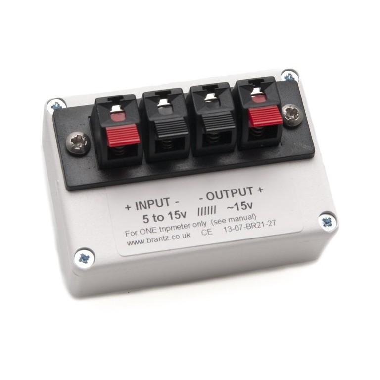 RetroTrip and International tripmeters require a stable voltage source to function properly. This Conditioner has been designed to provide this, especially if you car is fitted with a dynamo or is 6-volt. It connects to the battery terminals, and has an internal fuse which disconnects the power for 30 seconds and then re-connects if the unit is overloaded. It is only intended to supply a Tripmeter, and nothing else. If you purchase one of these tripmeters we RECOMMEND that you fit this.