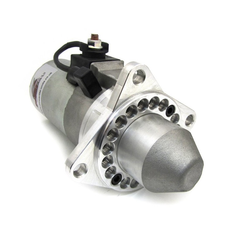Powerlite Slimline gear reduction starter motor designed specifically to fit Ford Crossflow and Pre-Crossflow engines with 110 teeth ring gear. This unit is a direct replacement for the Lucas 3 hole inertia starter motor ref LRS100