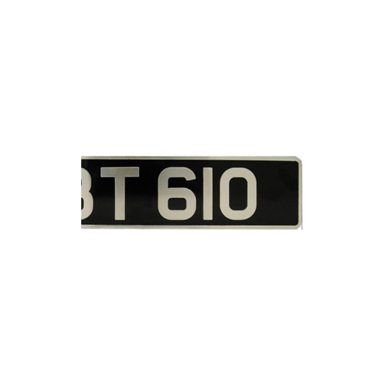 Pressed aluminium number plates with polished (silver colour) characters and edge. Post 1963 style 80mm (3 1/8 in) digits. This part number covers one oblong plate 520mm x 114mm (20.5 in x 4.5 in) and one 'square' 311 mm x 210mm (12 1/4 in x 8 1/4 in). For two oblong refer to 090.340. Picture shows oblong plate. Regulations for UK delivery demand that you provide us with the original V5C registration document and a proof of identity (A driving licence/utility or Council Tax bill in your name).