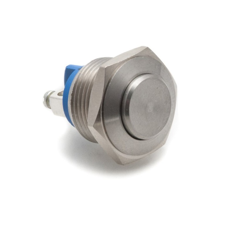 Push on-spring off. Requires hole 16 mm diameter. Fits pretty well flush with the dashboard. Rated at 0.8 amps on 12 volt systems. You may need to use a relay with this switch