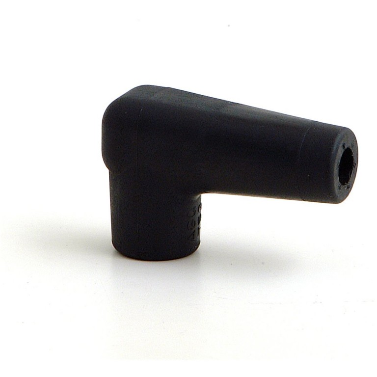Spark Plug Terminal Cover for use with the right angled tinned steel plug connector. Ideal for use when making up your own ignition leads where a non suppressed plug cap is required. Strip the ignition wire, fit to connector, bend it back, crimp the connector over the wire with a pliers and push it into the cover. If you wish you can secure by soldering. The cover then clips onto standard sparking plug tops.