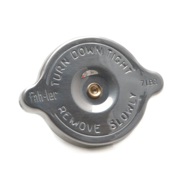 Stainless steel radiator cap which opens under pressure of 7 p.s.i. This cap will fit on a 2 inch radiator neck (Approximately 52mm) A rubber seal is included as part of the cap