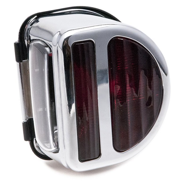 Reproduction of the Lucas ST51 type Stop, Tail and Number Plate Lamp with a bar to separate the Stop and the tail lamp. Supplied with two 5w bulbs as originally fitted. See additional photo.