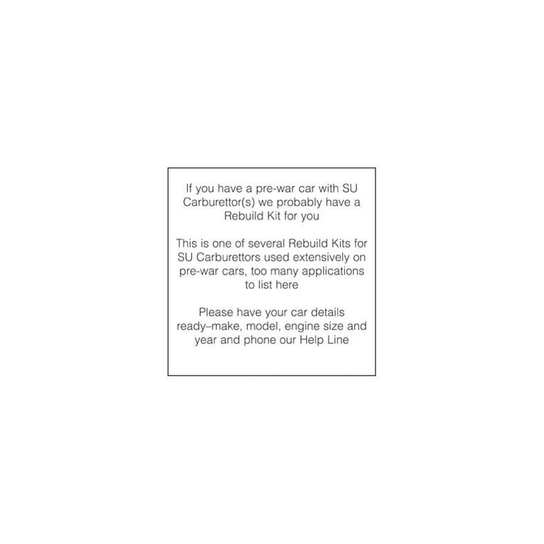 Contains new jet, float valve, all gaskets and seals, throttle disc and screws, spindle and spindle bushes to rebuild your SU Carburettor. Please note, however, that the NEEDLE is not included and should be ordered separately