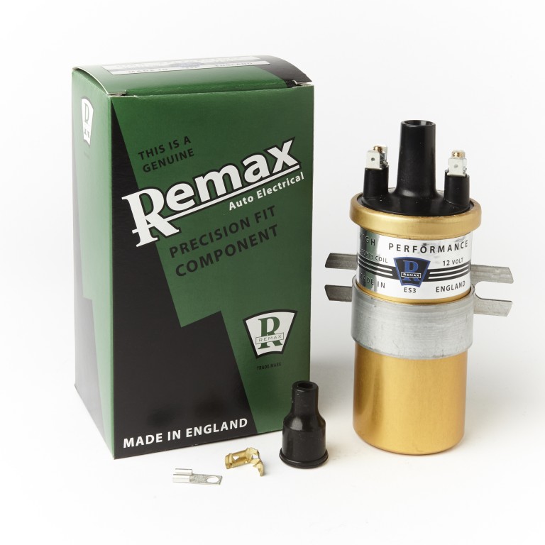Ignition coil Remax ES3 Made In England. 12V Sports coil for 12 volt systems with conventional ignition push-type HT connection applications. Oil-filled coil, Push in HT connector. Output voltage is 20,000 volts, No of poles 2, Primary resistance Ohm 2.9, Secondary resistance KOhm 9.2, Replaces Lucas DLB105, Motaequip LVCL219, Kerr Nelson LLS420. Supplied with the following: HT13 Crimp push-in terminal, HT14 coil boot, 2x M5 terminal nuts & washers, 2x Double male spade terminals and Mounting Bracket.