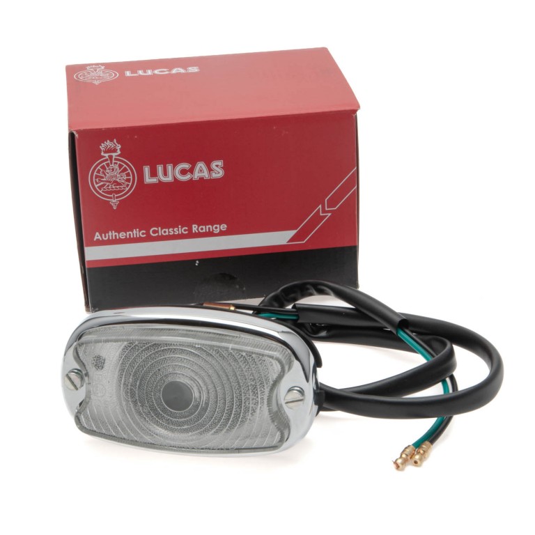 L595 as fitted to 'E' Type Jaguar. Can also be fitted to other cars. 106mm wide by 58mm tall. Requires a flat panel with 75mm clearance at the back.
