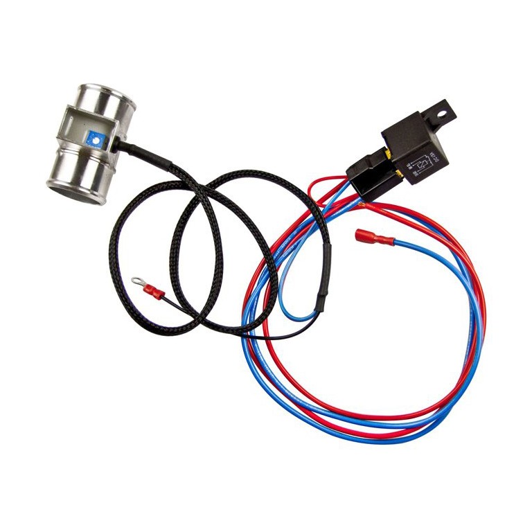 An adjustable thermostatic Fan Control specially made to control all 12 volt fans. Made from billet aluminium, it fits into your radiator hose and is secured with two hose clips ensuring a perfect seal. This particular item is for a hose with an INTERNAL diameter of 38mm. Simply adjusted with a screwdriver to shut off the radiator fan between 70 and 120 degrees C. For 12 volt positive earth only. A selection of sizes is available, as is a Negative earth version