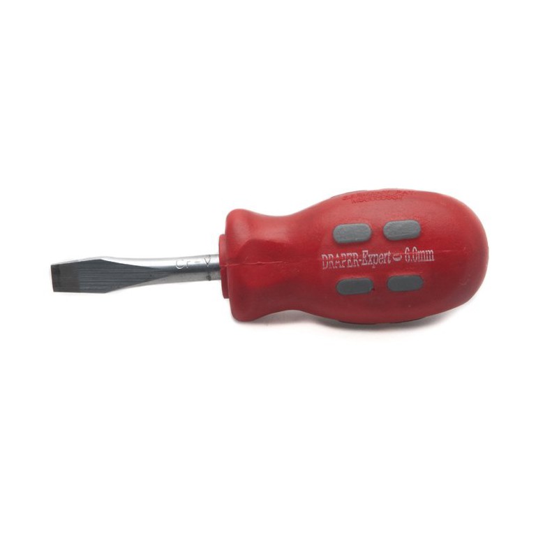 For plain slot screws. Hardened and tempered chrome vanadium steel blade with soft grip polypropylene handle. 6mm wide tip and 38mm blade length