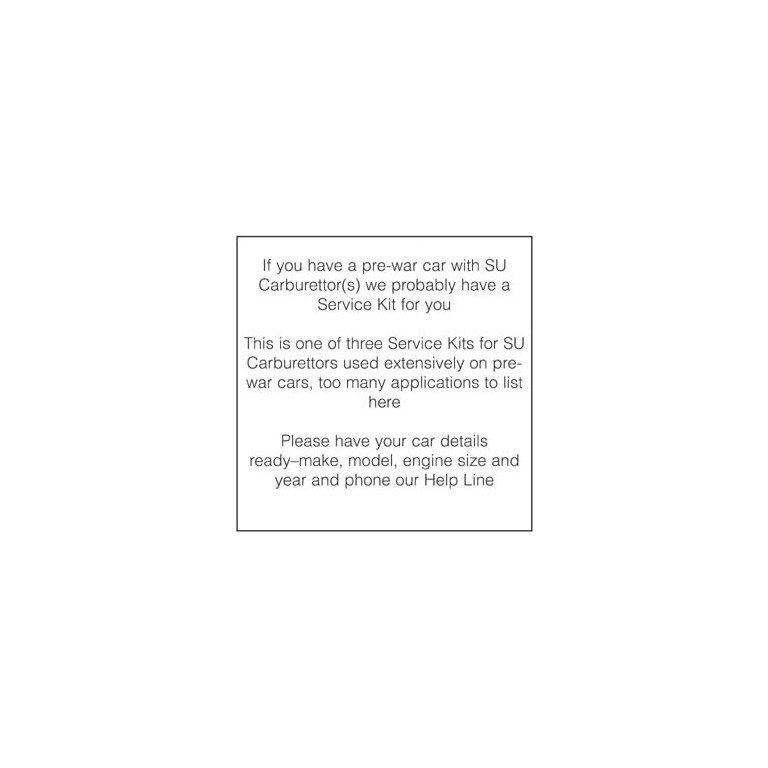These types of SU carburettors were mainly used on pre-war cars. Take out the jet and if it bears the number AVC8188 (0.090 in) then this is the service kit you need. Contains new jet, float valve and all gaskets and seals you would need to service one carburettor. Please note, however, that the NEEDLE is not included in this Kit and must be ordered separately. (If the jet number is AVC8182 refer to CSK40 and if it is AVC8183 refer to CSK41)