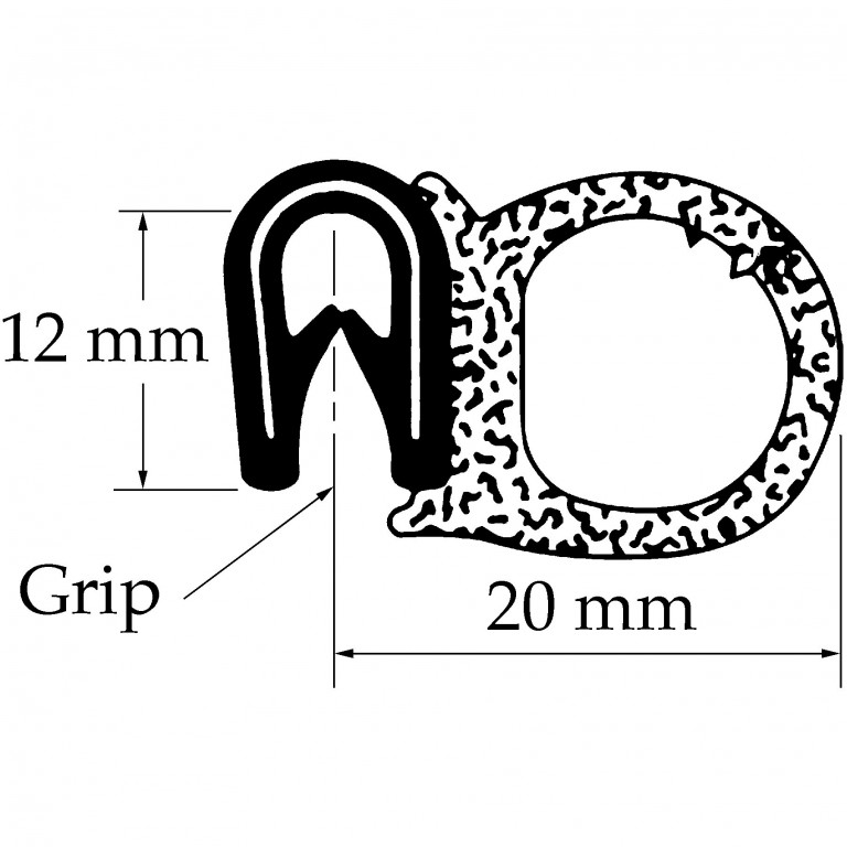 Grip range 1.5 mm to 2.5 mm. Sold by the metre