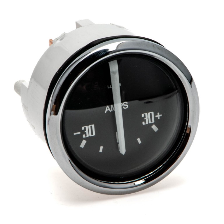 Classic full face slotted dial with 52 mm full vee chrome bezel, domed glass, white pointer, white print and LUCAS Logo.