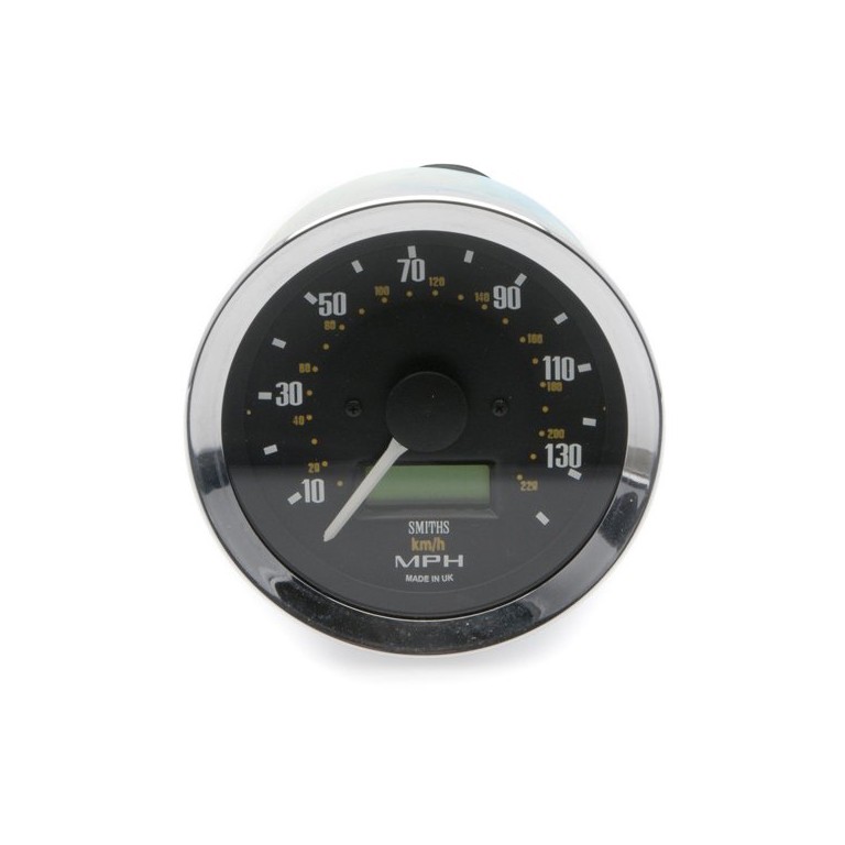 This is a technically advanced instrument with white graphics on a black dial with chrome 1/2 V rim. It is designed to match the other gauges in the Smiths classic range, but it operates electronically from 12 volts (NEGATIVE EARTH ONLY) and is calibrated by you to suit the gearing on your car. It is 80mm diameter, has illumination and reads up to 140 mph. Speed sensors and screened cable are available to purchase separately.