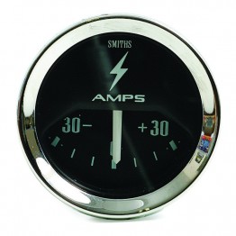 Genuine SMITHS designed instrument, skillfully crafted to the original drawings and specifications, using the original tools and dies. This one is 52 mm diameter with 1/2V chrome bezel, and white figures on a black quadrant dial, reading from -60 to +60 amps. Supplied with bulb holder and bulb, together with the necessary mounting clamp.