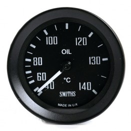 Genuine SMITHS designed instrument, skillfully crafted to the original drawings and specifications for the GT40, using original tools and dies. 52mm diameter with white figures on a black dial reading from 30 to 120 degrees C full scale. Mechanical operation, with 3048 mm (120 in) long capillary with 5/8 UNF male thread adaptor to screw into the block. Other adaptors are available if required. Supplied with bulb, bulb holder and mounting clamp