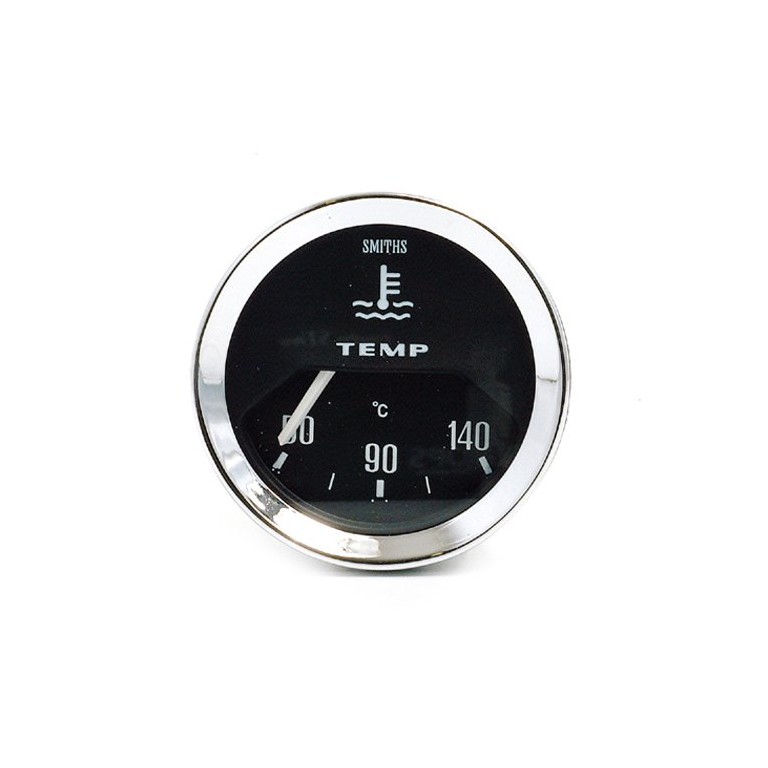 Genuine SMITHS designed instrument, skillfully crafted to the original drawings and specifications, using the original tools and dies. This one is 52 mm diameter with 1/2V chrome bezel, white figures on a black quadrant dial reading from 50 to 140 degrees C. Supplied with bulb holder and bulb, together with the necessary mounting clamp A corresponding temperature sender will be required, These gauges work on 10 volts and a voltage stabiliser is required (1 per car) The stabiliser is polarity sensitive, so ensure you select the correct one.