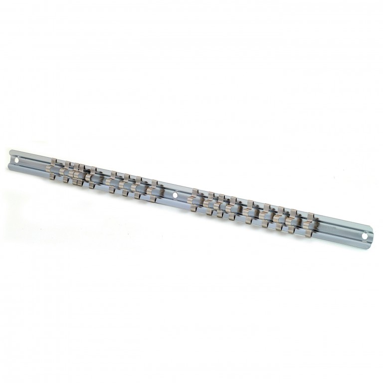 18 socket holding clips on a rail, can be easily arranged in any desired position