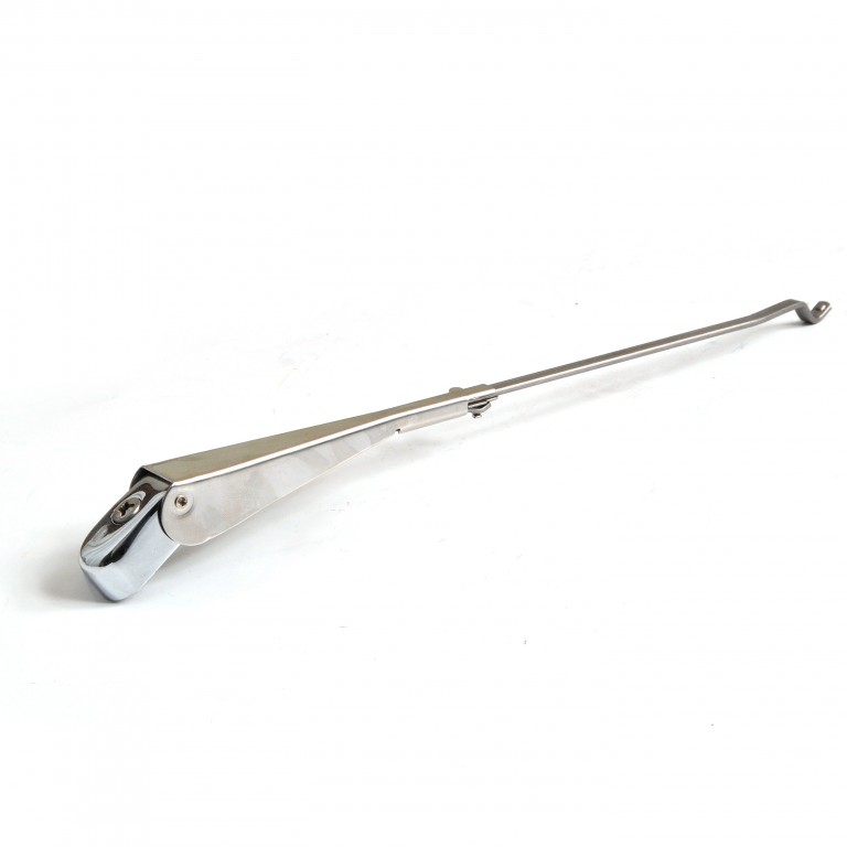 Wiper arm for Lucas 14.8mm splined shafts, adjustable for length between 255mm and 315mm. Cranked left. This Arm is fitted by tightening the crosshead screw which is helpful if the splines on your wheelboxes are worn. Stainless steel. This Arm can also be fitted to 1/4 in plain shafts by using adaptor 040.001. For cranked right refer to 040.315