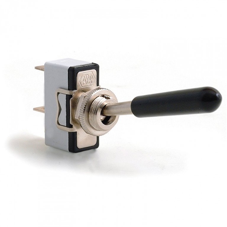 Two terminals, providing Off-on function, suitable for most general applications. Can be used on 6 or 12 volts. Requires hole 12mm diameter, panel thickness between the two nuts supplied up to 4.5mm. On-off Plate available. This a quality switch with a 50mm long stainless steel lever. It is supplied with a rubber boot for the end of the lever. A seal kit is available to make switch lever damp proof.. A range of switches offering different functions is available. Rated at 15 amps on 12 volt systems. This switch can be made to fit in place of an original Lucas switch by using the special Bezel or Nut in conjunction with the special Threaded Washer. Bezel or Nut can be used separately for new fitments