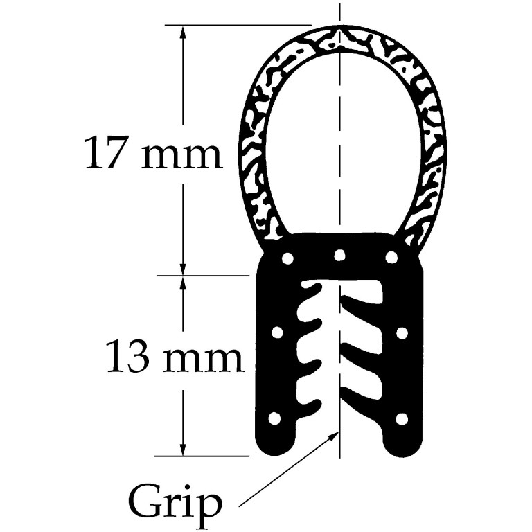 Grip range 2 mm to 3 mm. Sold by the metre