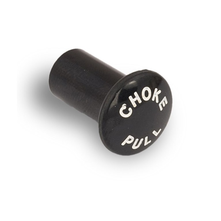Round Black Knob, Lettered CHOKE PULL as shown. As fitted to TR2, TR3 and TR3a. This knob is designed to fit to a choke cable with a hexagonal section at the dash end We keep a range of knobs of the type fitted to the earlier TR's