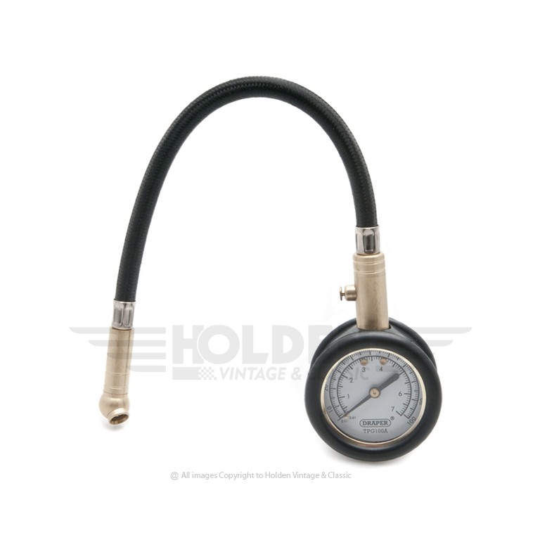 Highest quality with all brass internals. The swivel head makes it easy to locate on the valve, and a button to reduce the pressure in the tyre (useful on car rallies or the drag strip!). Reads 5 to 100 p.s.i. (0.5 to 6 bar). Supplied with protective shroud.