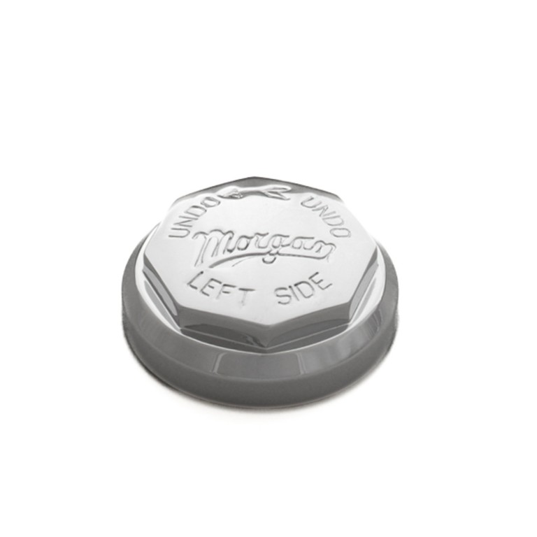 Chromed Brass wheel spinner. Fits Morgan 4/4 1600 & 1800 1968-85; Plus 4 1985; Plus 4 & 4/4 Mk I/ II / III/ IV & V 1950-68; Plus 8 1968 onwards; Three Wheeler.