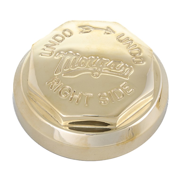 Polished Brass wheel spinner. Fits Morgan 4/4 1600 & 1800 1968-85; Plus 4 1985; Plus 4 & 4/4 Mk I/ II / III/ IV & V 1950-68; Plus 8 1968 onwards; Three Wheeler.