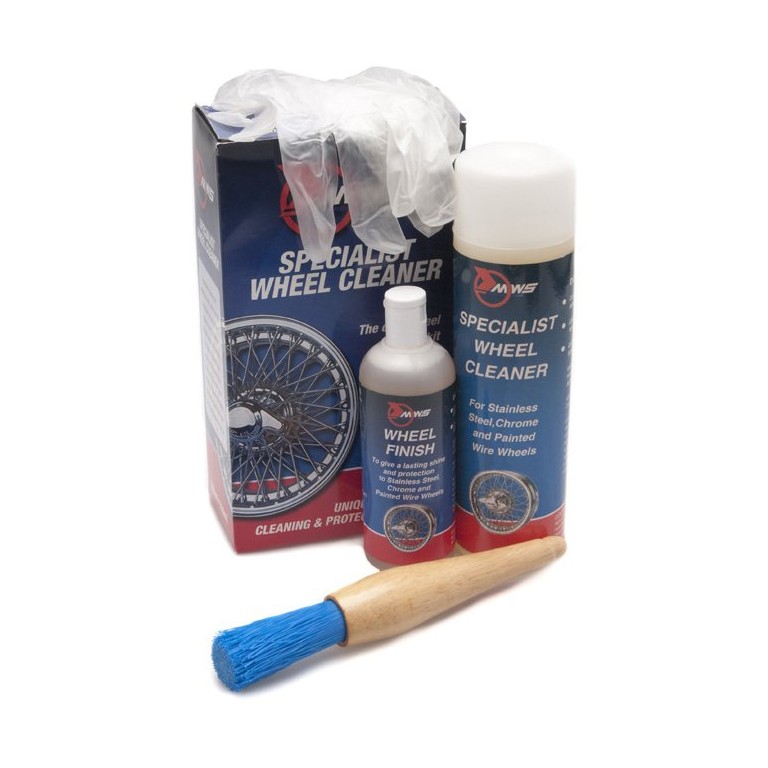 Complete with brush. Really effective. However, this product contains acid and should not be used on unlacquered wheels