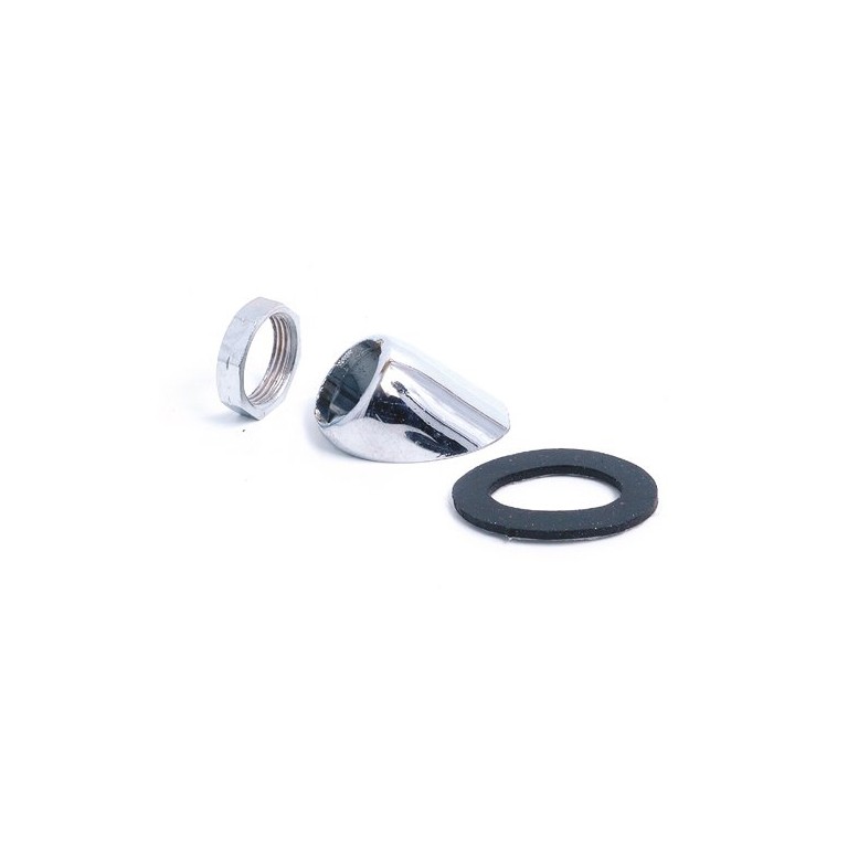 Chromed metal cover, chromed nut and gasket as used on the MGA, Mini and many other cars. Set of parts for one wheelbox