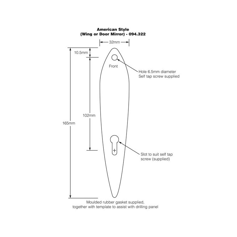 American style chromed long base mirror, suitable for either wing or door mounting. 110 mm diameter flat glass. The base measures approximately 165x30mm. Base mounted via 2 screws. Supplied complete with rubber gasket and drilling template. Can be used on either side of your vehicle.