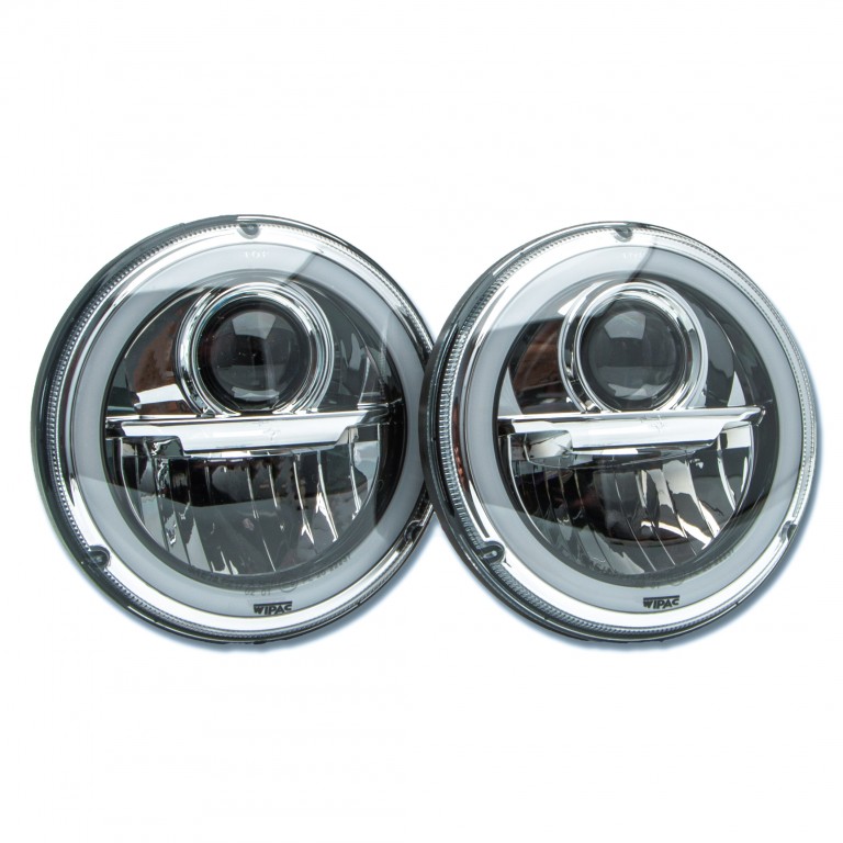 Designed to replace any existing 7 headlight – for example, Land Rover Defender, Classic Mini, and many classic vehicles. These headlights are exclusively designed and manufactured by Wipac and are branded on each lens. The quality of these LED headlights is unrivaled and Wipac has invested heavily in time and components to ensure that these are the best on the market.