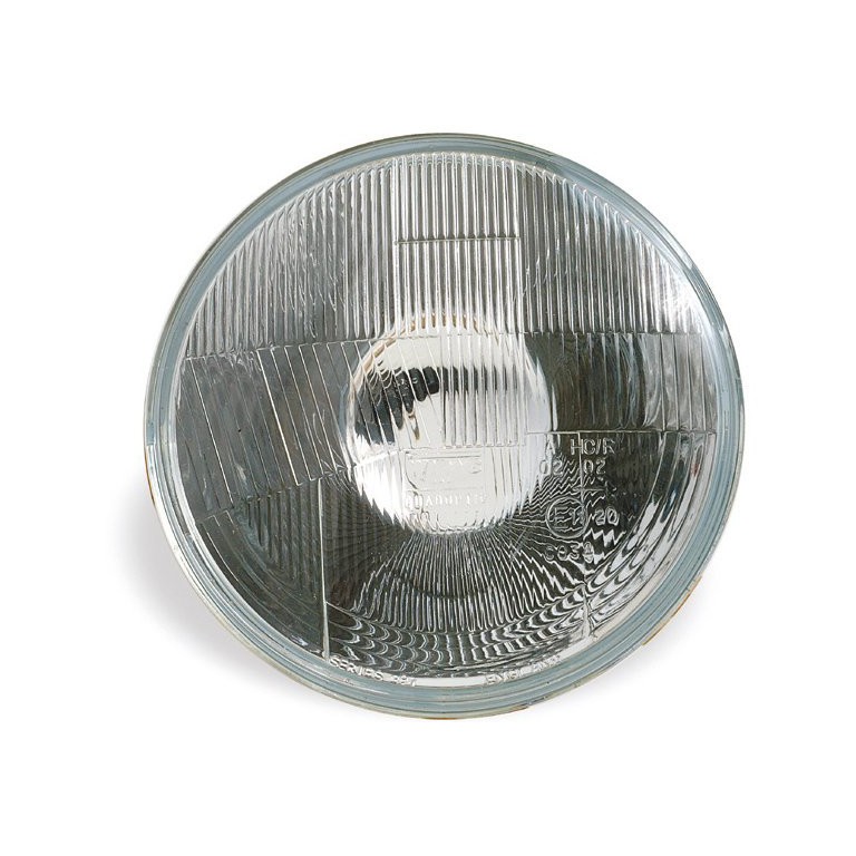 Wipac lamp unit with slightly domed lens and plastic reflector, E Marked. Originally fitted to Mini, Land Rover and Morgan. Right Hand Drive without side light. For use with H4 Halogen bulbs and harness which are available to order separately