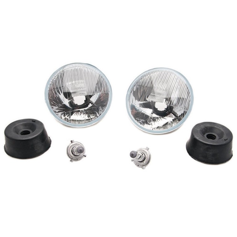 The ideal way of buying Halogen replacements for all cars using round 12 volt 7-inch Headlamps. In addition to the two light units, which are 'E' marked, there is everything you need to fit Halogen units to your car, including 60w/55w Halogen bulbs and rubber sealing boots.